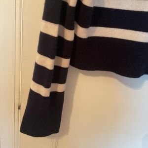 Navy blue and white cropped rugby stripe 100% cashmere sweater from Banana Republic. XXS In excellent condition.