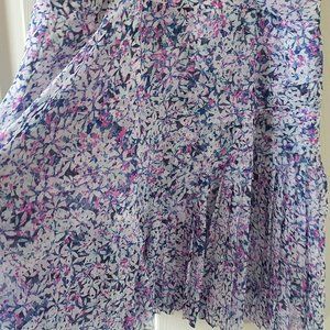 Worn once, then dry cleaned. Lovely floral print (blue/purple/magenta), pleated skirt and crossover front details. Fully lined, size 10P (petite). First two pics stock to show off the awesome pleats in the skirt!