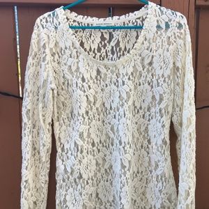 Cream coloured Banana Republic stretch lace top. Long sleeves, scoop neck