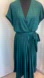 Banana Republic pleated short sleeve V-neck wrap midi dress Glen Green Sz S