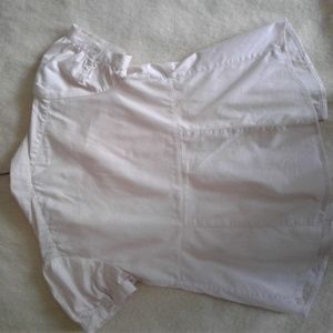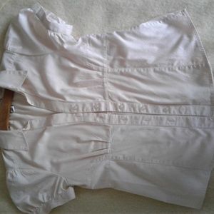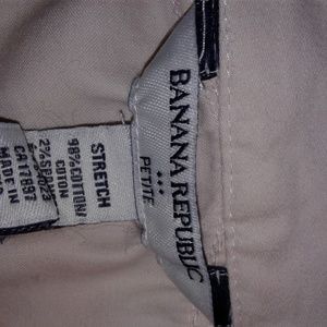 Banana Republic cream dress shirt made out of 98% cotton, 2% spandex. Petite size 6. Previously owned, but good conditions with no stains or signs of wear and tear. Just a note that I am wearing a clip to cinch the waist in the picture just because the garment is too big for me, and size six ladies can get a better idea on how it is supposed to fit.