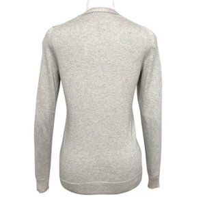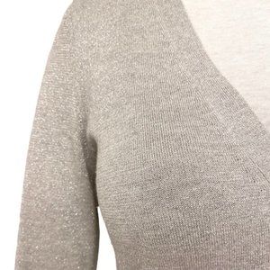 Style tags: Banana Republic chic, festive, comfy, every day, all season, holidays, shimmer, glitter, metallic, casual, party, cocktail, tight knit, silk blend, V-neck, button front, long sleeves, light, soft, thin. Women's size S
