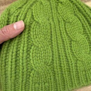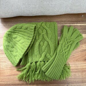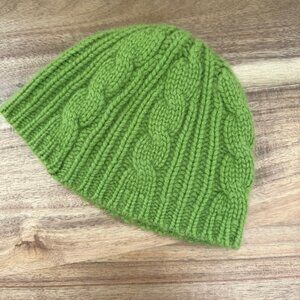Beautiful cable knit toque made of thick and soft 100% Cashmere yarn. Gorgeous green colour! New with tag. Matching scarf and gloves also available in my closet. Hopefully the photos show how substantial the hat is- this is not lightweight, cheap cashmere yarn. It's super thick and warm! :)