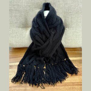 Banana Republic thick Aran cable knit pull-through Cashmere scarf Black