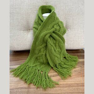 Banana Republic thick Aran cable knit pull-through Cashmere scarf green