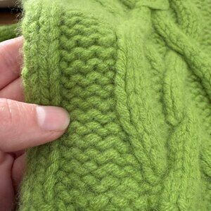 Beautiful cable knit scarf made of thick and soft 100% Cashmere yarn. Gorgeous green colour! Matching hat and gloves also available in my closet. Hopefully the photos show how substantial the scarf is- it pretty much stands on its own- this is not lightweight, cheap cashmere yarn. It's super thick and warm! :)