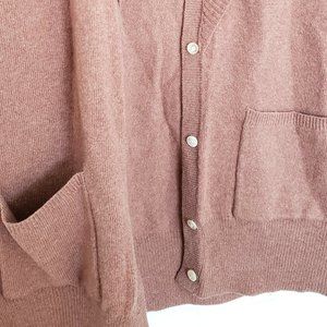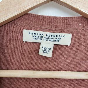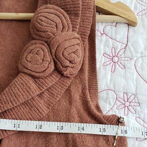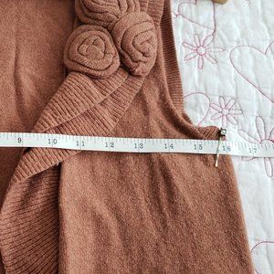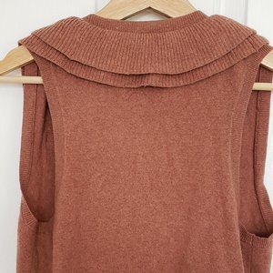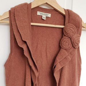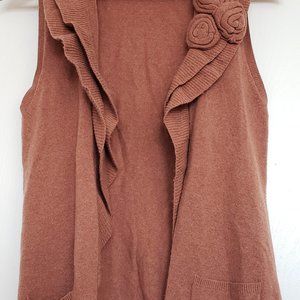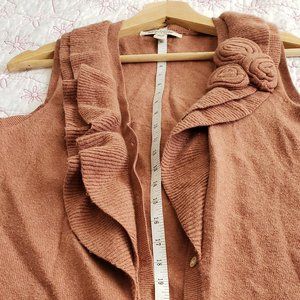 Banana Republic rose coloured button down sweater vest with ruffles, rosette detail and two front pockets.