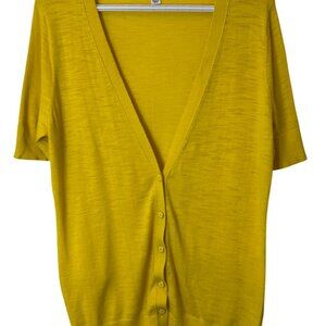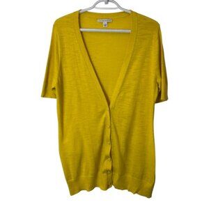 Banana Republic yellow knit short sleeve V neck button up cardigan size XL