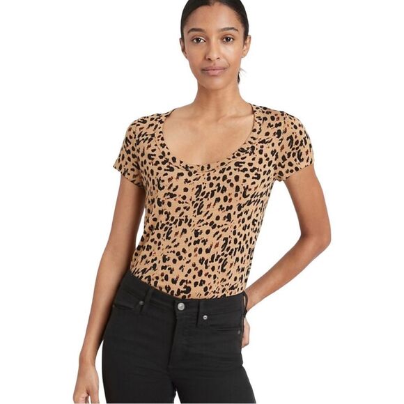 Banana Republic Cozy Slub Cotton Modal Camel Animal Print T-shirt
