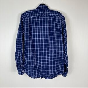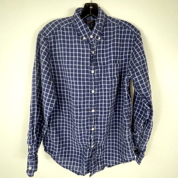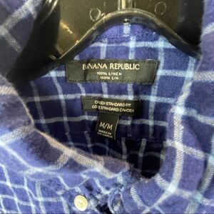 Banana Republic Shirt Men's Size Medium 100% Linen Long Sleeve Button Down Blue Check
