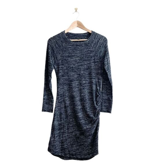 New With Tags: Banana Republic Sweater Knit Dress Black Marl Women's S Ruched Scoop Neck. Side Ruching, Soft, Stretchy, Long Sleeved. Please see photos for approximate measurements.