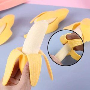 Release your stress like never before by squeezing and stretching this realistic looking squishy pealed banana toy. This toy banana is made out of comfortable, squishy material that does not permanently deform when being squished and stretched. The Banana Simply and slowly rebounds to its original form after being compressed or stretched, leaving it unchanged and ready to take away more stress