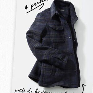 Banana republic plaid wool overshirt. Really thick like a coat. Coton body lining and polyester arms lining.