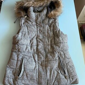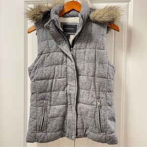 Banana Republic Faux Fur Herringbone Hooded Puffer Vest - S