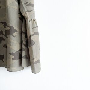 Banana Republic Women's Blouse Camo Long Bell Sleeves Top Green Size Small