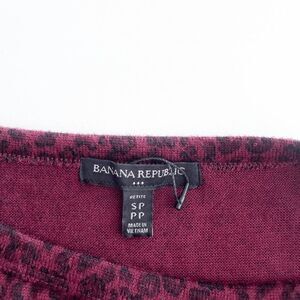 Banana Republic Women's Knit Top Puff Long Sleeve Animal Print Maroon Small