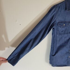 Blue denim medium wash quality button down shirt from Banana Republic in excellent preloved condition. No stains or tears.