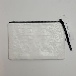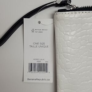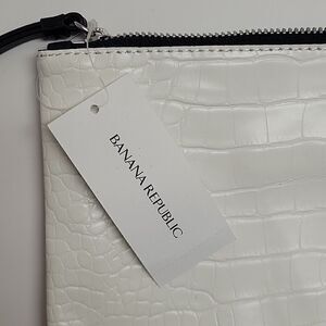 Brand new with tags Banana Republic pouch in white faux croc leather pouch / purse. Perfect to use as a small bag for going out and also works great as an organizer inside your bigger bag for you smaller items and makeup etc. Fully lined in a black fabric. Metal zipper closure along top. Measures 15 × 22cm.