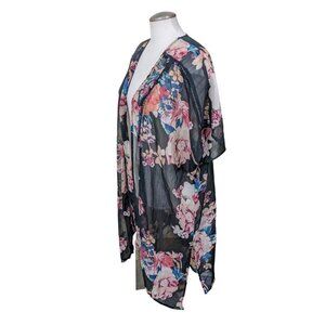 Band Of Gypsies Womens S Black Sheer Floral Kimono Duster Open Boho Whimsigoth