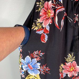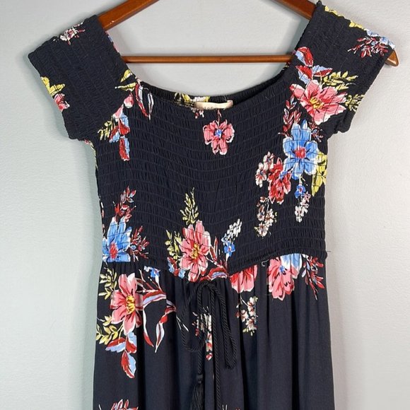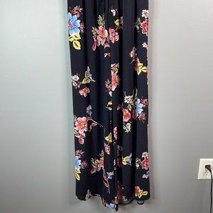 Band of Gypsies Black Floral Print Smocked Wide Leg Jumpsuit Romper Pockets Sm