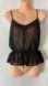 Size XS. Black with gold shimmer spots throughout. Adjustable tank straps. Scoop neck. Faux button front. Peplum waist with faux tie detail. Sheer.