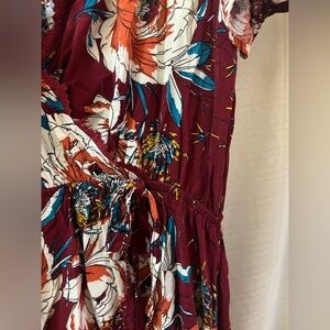 ⚪️ Band of Gypsies Elegant Burgundy Floral Wrap Mini Dress Size Large