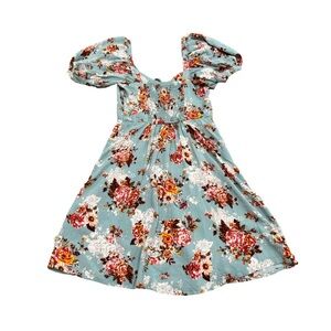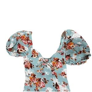 Band of Gypsies Floral Puff Sleeve Mini Dress | Blue, White, Pink | Size Small