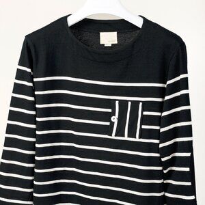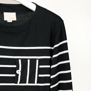 Band of Outsiders Black & White Striped Cotton 3/4-Sleeve T-Shirt