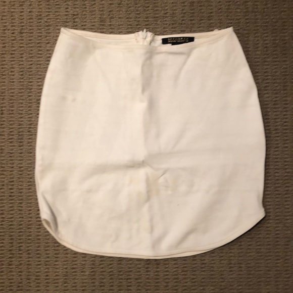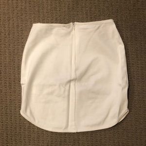 Stretchy bandage white mini skirt, zipper at the back. Even tho this is a size medium it fits pretty small