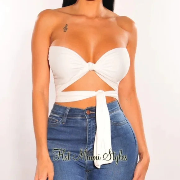 Designed with an adjustable tie-up, allowing for you to wear this top many ways! Made of the perfect double lined bodice that stretches to your desired look.