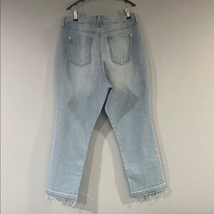 Stylish ankle jeans with a frayed hem. Perfect for everyday style. Size 14, 46 cm across the waist, 96 cm length, 69 cm inseam