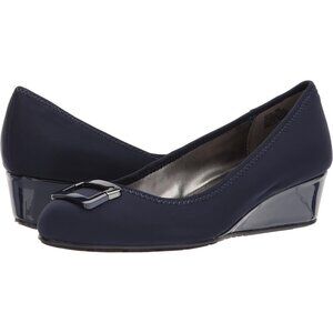 Bandolino Womens Blue Navy Closed Rounded Toe Flexible Wedge Flat Tad Pump