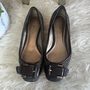 - Bandolino Brown Jolly Jo Tweed Flat Shoes ,Buckle Accents on Toes,Round Toes,fabric upper,dark brown heel,bronze detail on buckle. Get comfortable feet and style With this comfy flat shoes,Magical flats and look stunning. Wear them when you want to look put together but comfortable, too.