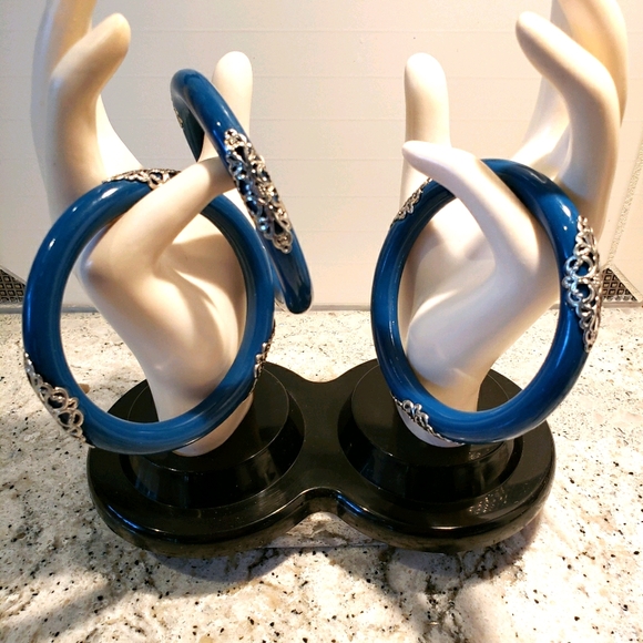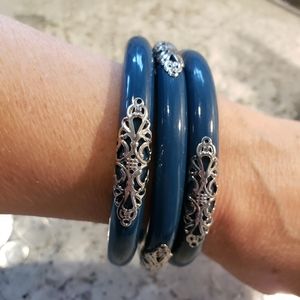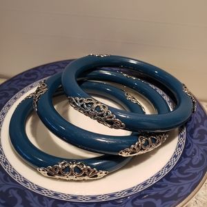 3 Bangle bracelets. Plastic and metal. Unique design with a rich look.