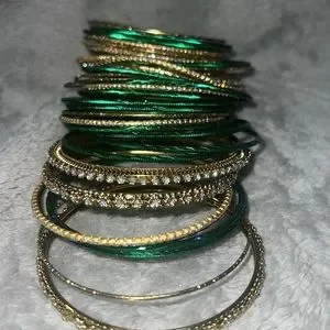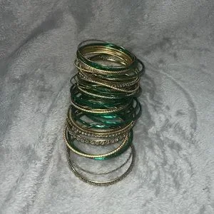 Gold and green diamond bangles Fashion jewelry Used 1 time for wedding 💚🤍