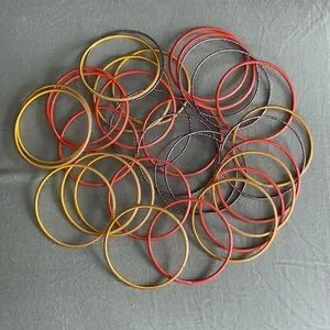 Orange, mustard and metallic bangles purchased on a trip to India.