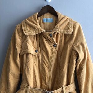 Banilla B Vintage Comfy Long Belted Waist Zip Up Winter Coat Jacket Yellow