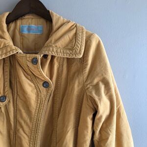 Banilla B retro vintage style soft thick comfy and cozy belted long length long sleeve zippered zip up winter jacket coat top with flattering buckle at waist. Yellow in colour. Fully lined. No size tag but likely a size S / small. Approximate measurements | armpit to armpit: 18.5“ waist: 16” length: 36“ sleeve: 24“ Great gently pre loved condition / EUC. Fabric and care tag are in foreign language - fabric is soft and corduroy like. Offers welcome!
