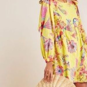 Banjanan Buttercup Birdie Long Sleeve Yellow Flowy Dress Size L