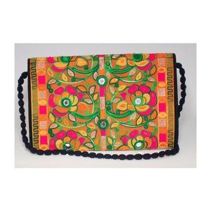 ๐ Banjara Rabari Style Mirrored Envelope Clutch Bag Orange Pink Green Boho Hippie ๐