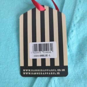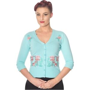 Banned Apparel Retro Rockabilly Teal Cardigan Sweater with Pink Flamingos
