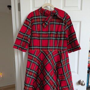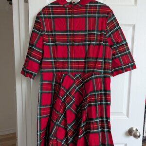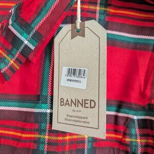 Cute holiday dress from UK brand Banned Retro. Has a little bow detail at the neck, pockets, and lots of stretch.