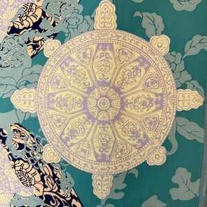 Baoshidi 100% Silk Scarf – Teal & Lavender – Asian Motif – New with Tags