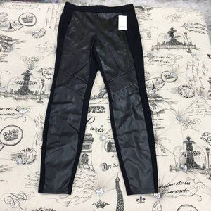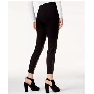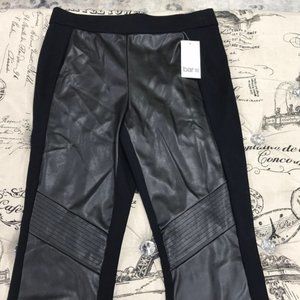 Sleek faux leather and stretchy panels make these Bar III legging pants a go-to for going out.