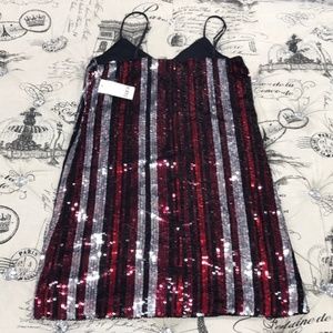 Party on. Pop into Bar III's sequin shift that's striped with vibrant shades of sparkle.