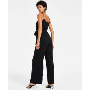 Bar III Women's Black Textured Crepe Belted V-Neck Formal Jumpsuit NWT