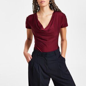 Bar Iii Women's Short-Sleeve Cowlneck Bodysuit, Created for Macy's - Cherry Pie