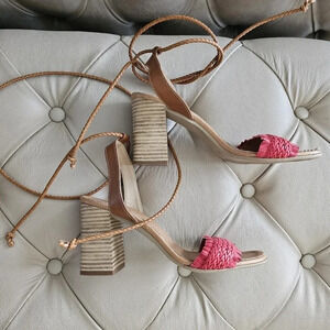 Barbara Barbieri Leather Ankle Tie Sandals High Heel Italy Red Brown size 8.5