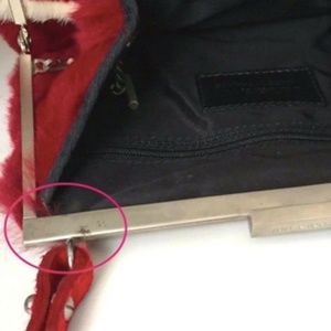 ** Due to overtime storage of the handbag, the interior chrome plating has tarnished a bit with minor chips (please see last photo). This is not noticeable when bag is closed.