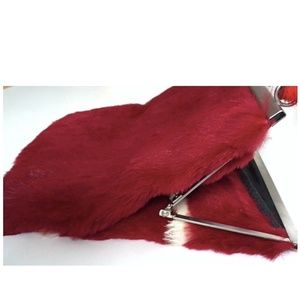 This is a beautiful vintage Barbara Rihl handbag Made in France. It's exterior is covered in multi-colored rabbit fur for a vibrant, yet sophisticated look. It has a chrome finish clasp on top for easy opening along with a red leather handle lined with red rabbit fur. It's interior contains a zipper pocket for extra storage. This is a must have for all handbag lovers. Perfect for any occasion.